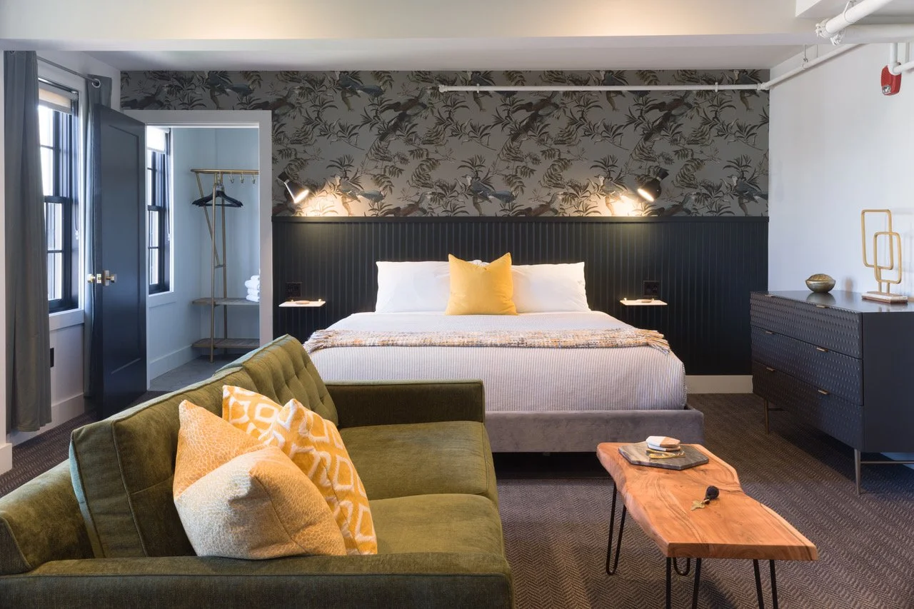 A 500-square foot studio apartment (2nd floor, one flight of stairs required) • king-size bed • kitchenette with full-size SMEG refrigerator, microwave, coffee maker, toaster and hot plate (no oven) • private bath with tub/shower unit • access to washer and dryer • 50” Smart TV with over 100+ channels • free parking for one vehicle • daily housekeeping not provided • all apartments and property grounds are non-smoking